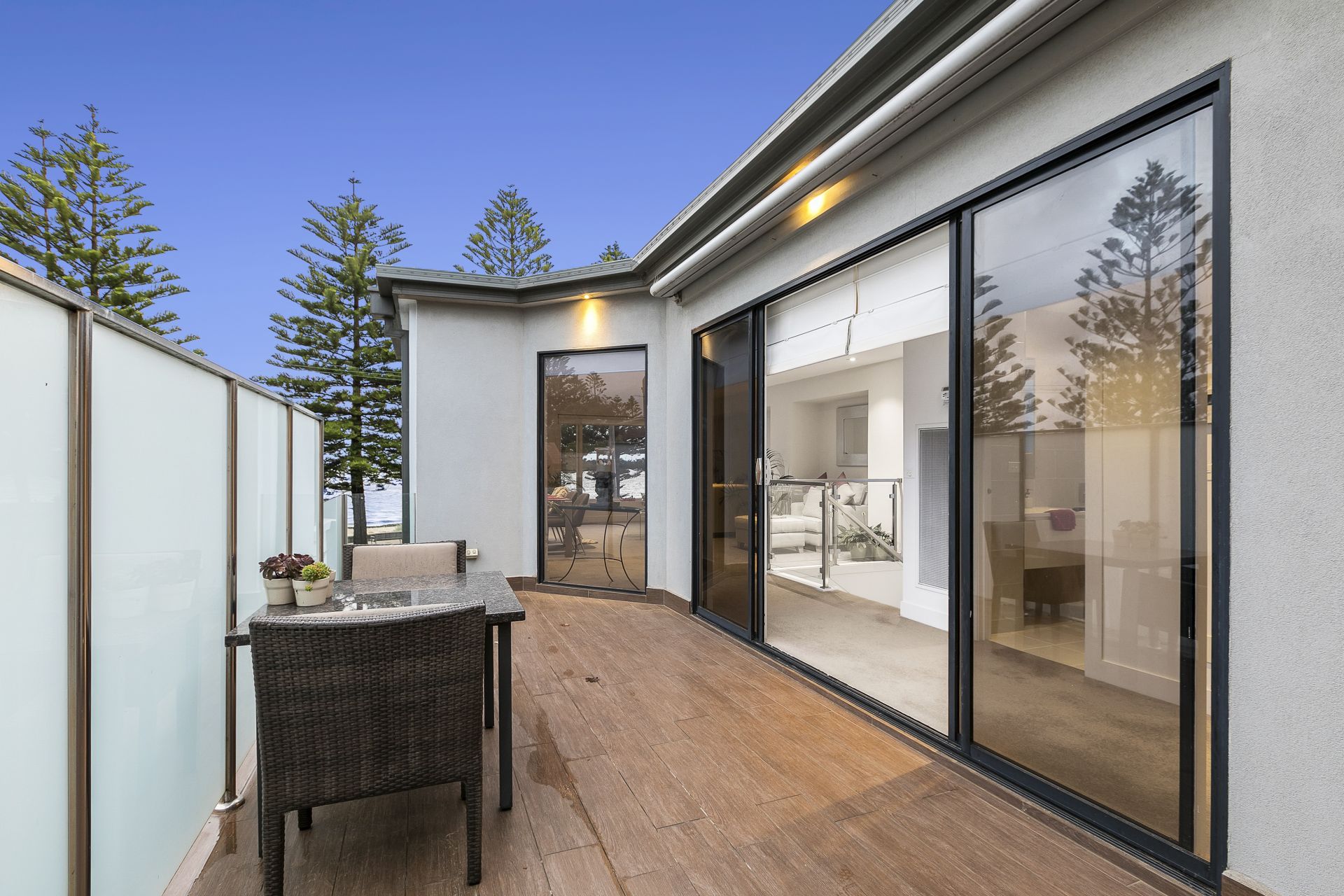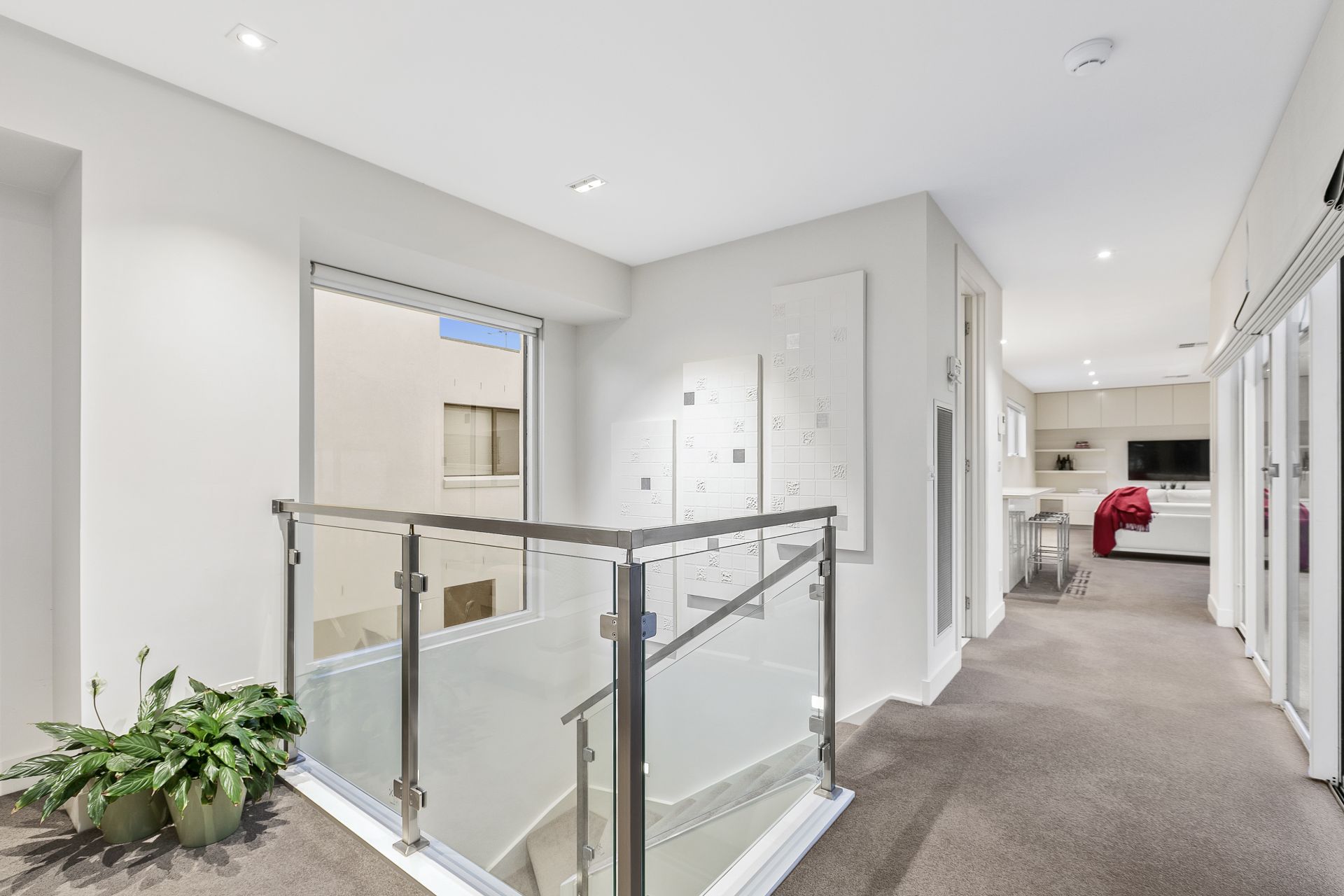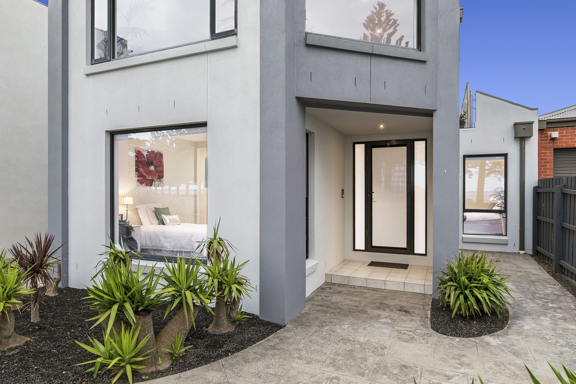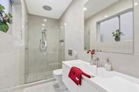 This light filled open plan property comprises two master bedrooms with walk in robes and en-suites, a third bedroom / study and powder room for guests on the second level.